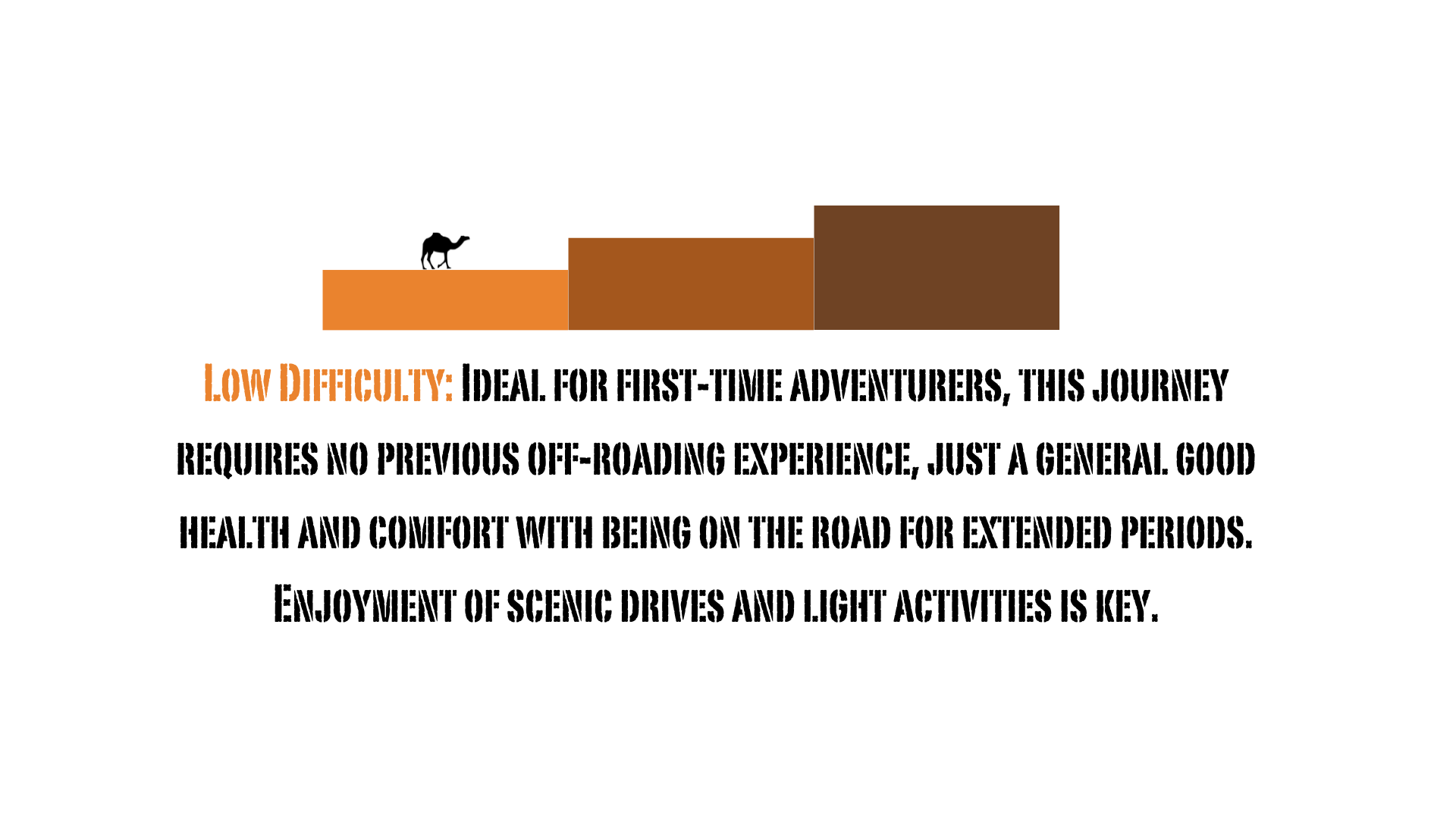 Low Difficulty: Ideal for first-time adventurers, this journey requires no previous off-roading experience, just a general good health and comfort with being on the road for extended periods. Enjoyment of scenic drives and light activities is key.